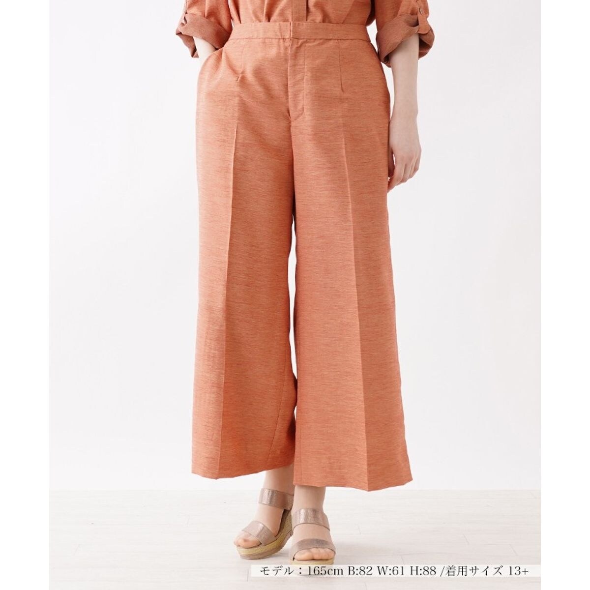 美しいカラーリングがコーディネートを印象的に彩るワイドパンツ。足首が覗くアンクル丈だから、軽やかさも意識した着こなしが楽しめます。センタープレスですっきりとキレイめに仕上げた、オフィスやよそ行きシーンにもオススメの1品。
