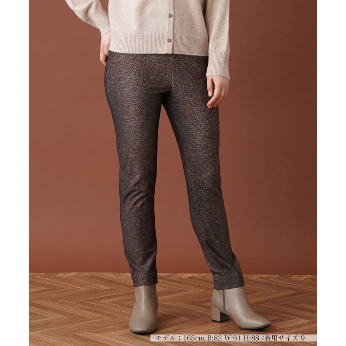 カラーネップを散りばめたヘリンボーン柄のプリントが秋冬シーズンらしい雰囲気を醸し出す、アンクル丈のスキニーパンツ。股上をやや深めに設定し、程よいリラックス感を作り出しています。伸縮性抜群のストレッチ素材を使用しているから動きやすく、ウエスト総ゴム仕様でフィット感も抜群。やや厚手の裏起毛生地なのでほんのり優しい温もりが感じられます。合わせるトップスを選ばず気軽にコーディネートでき、さりげなくセンスをアピールしてくれる一本です。