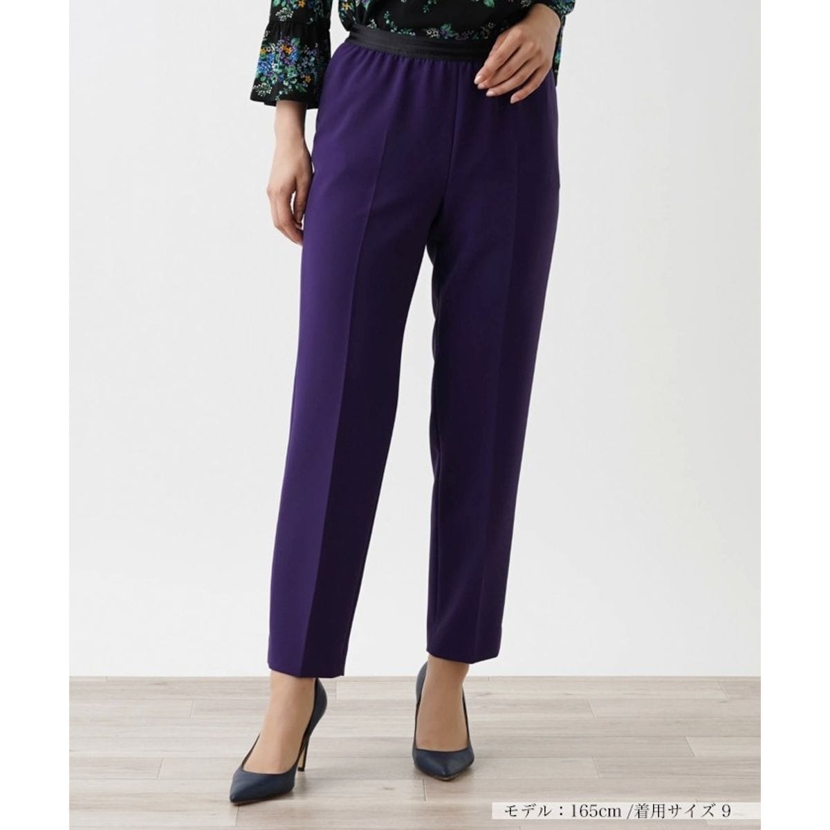 カジュアルな日常使いからオフィスまで、さまざまなシーンでフレキシブルに活躍してくれそうなテーパードパンツ。腿周りにゆとりをもたせつつ、レッグラインをすっきりと絞り込んだテーパードシルエットがスマートな佇まいを演出。生地には適度な伸縮性があり足捌きも良好。ウエストはゴム仕様とし、心地よいフィット感をもたせています。ベーシックなシャツやカットソーはもちろん、フェミニンなブラウスやカットソーとのコーディネートもバランスよく決まります。