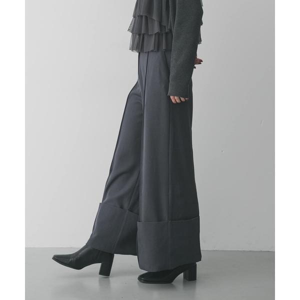 ・ワイドな裾の折り返しが、着こなしにモードな印象をプラス