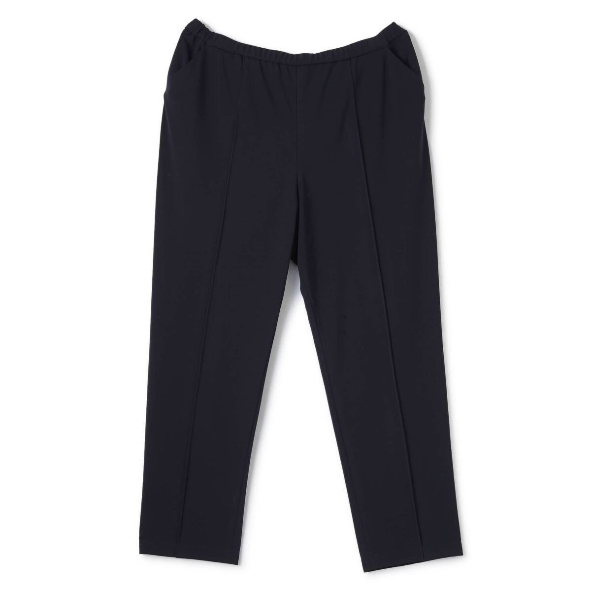 快適な穿き心地と美しいシルエットを両立する、無地パンツ。ポリエステルを主体とした素材にポリウレタンを混紡することで、程よいストレッチ性を実現いたしました。ご自宅で手洗いできるウォッシャブル仕様で、日常のお手入れも簡単。ウエストはゴム入りで、窮屈感なく快適にお召しいただけます。フィット感がありながらも、体を締め付けすぎない絶妙なサイズ感で、脚のラインをすっきりと見せてくれます。オフィスシーンはもちろん、普段使いまで、幅広いシーンで活躍する汎用性の高い一本です。