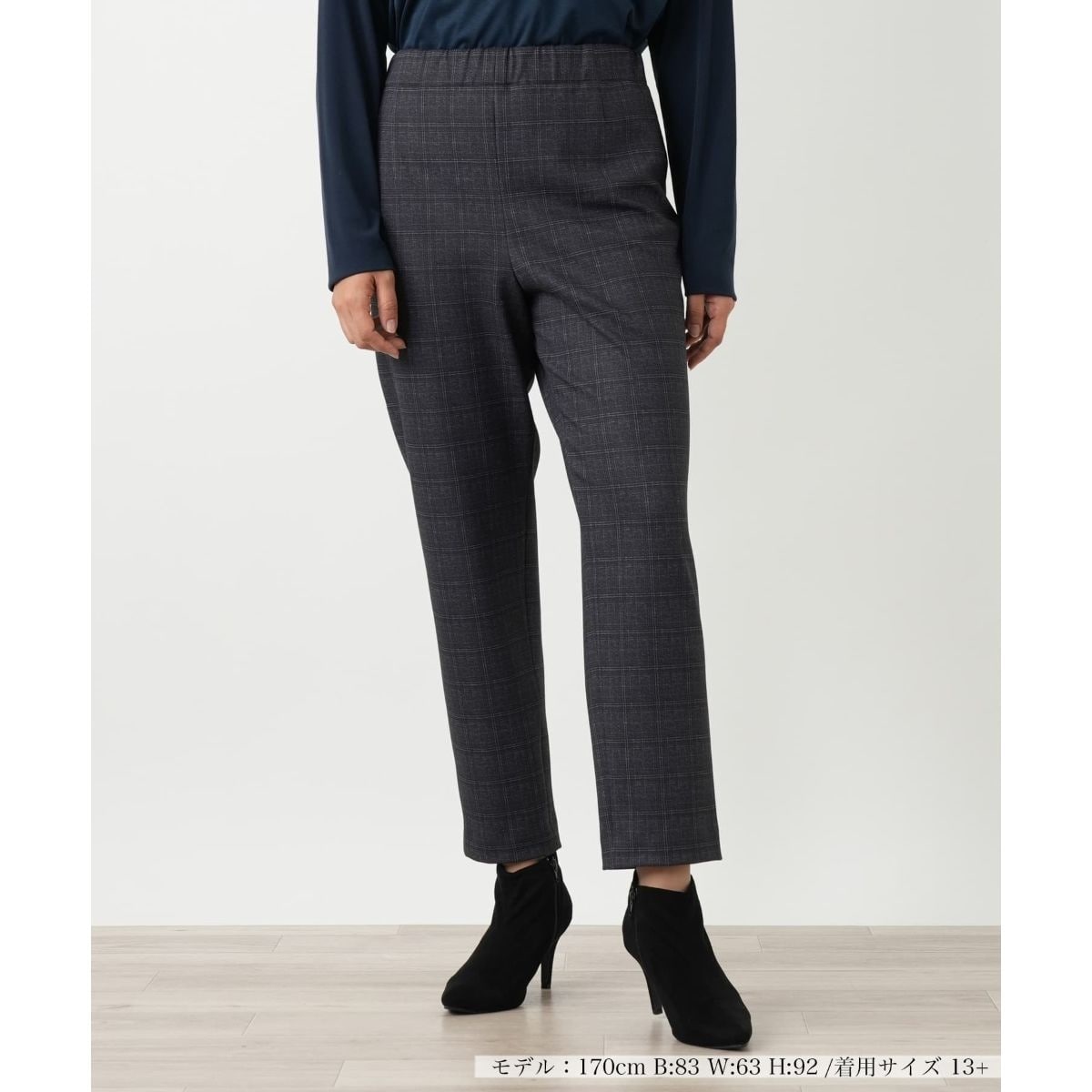 暖かな着心地と美しいシルエットを両立する、冬に嬉しいスリムパンツ。機能的なポリエステル混素材にポリウレタンを混紡することで、快適なストレッチ性を実現いたしました。上品なチェック柄が、コーディネートに洗練されたアクセントを添えます。ご自宅で手洗いできるウォッシャブル仕様で、お手入れも簡単。ウエストはゴム入りで、窮屈感なく快適にお召しいただけます。フィット感がありながらも、体を締め付けすぎない絶妙なサイズ感で、脚のラインをすっきりと見せてくれます。大人の女性の多様なライフスタイルに寄り添う、機能性とデザイン性を兼ね備えた一本です。