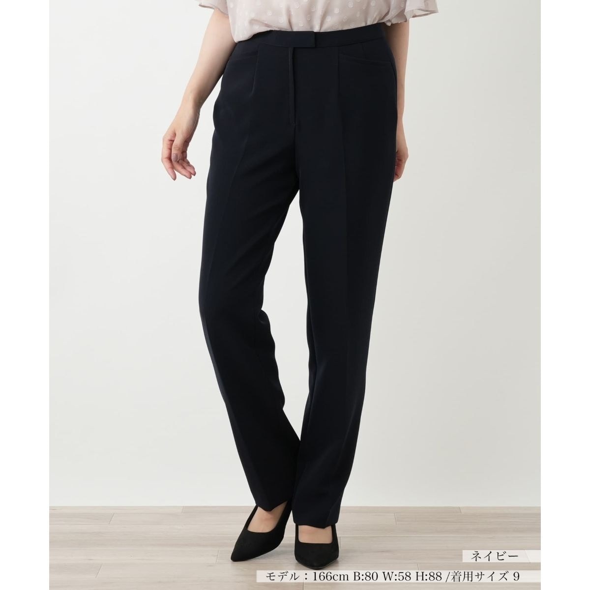 きちんとした見た目と快適な穿き心地を両立したストレートパンツ。無駄のないベーシックなデザインで、センタープレスが縦のラインを強調し、すっきりと美しいレッグラインを演出します。ウエストはゴムベルトながら、お腹周りはもたつかないスマートな設計。伸縮性に優れたコンフォートストレッチ生地で、動きやすさも抜群です。オンオフ問わずフレキシブルに着回せる、ワードローブの頼れる一本。