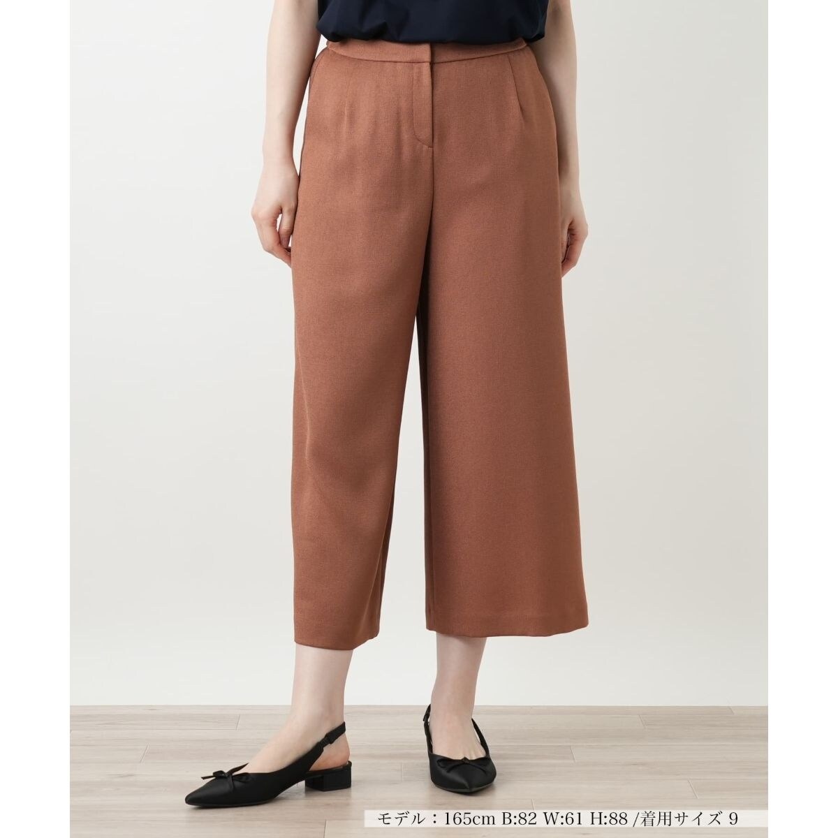 リラックス感と美シルエットを両立したワイドパンツ。足元をすっきりと見せるクロップド丈は、パンプスやフラットシューズ、スニーカーなど、様々なシューズと好相性。気になる太ももやヒップラインを優しくカバーし、快適な穿き心地を叶えます。やや薄手ながら伸縮性のある生地は、しなやかに身体に馴染み、ストレスフリーな快適さを実現。後ろ部分のみゴムベルト仕様のため、フロントはすっきりと見せつつ、穿きやすさも両立。両サイドには便利なポケットもレイアウトしています。
