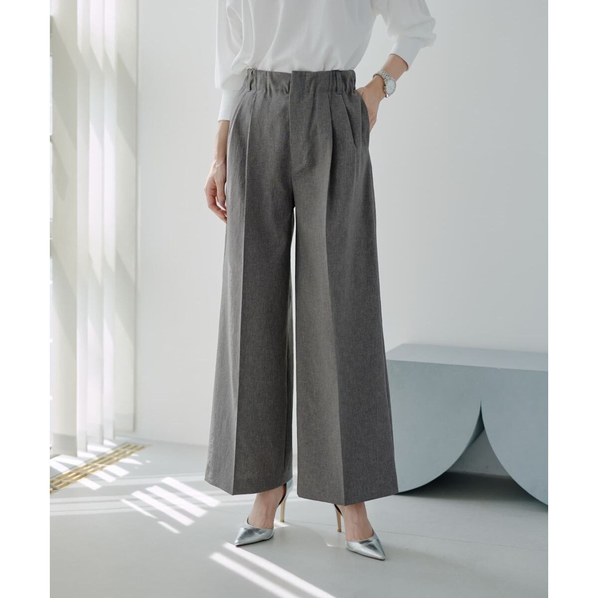 洗練された印象のセンタープレス入りのワイドパンツ。やや薄手の軽やかな生地で、初秋の季節にぴったりの一着です。後ろウエスト部分はゴム入りなので、フィット感も快適で、リラックスした着心地を実現します。シンプルなデザインでどんなトップスにも合わせやすく、きれいめからカジュアルまで幅広いスタイリングに活躍。ポケット付きで実用性も兼ね備えています。上品なカラーが大人の女性らしい落ち着きをプラスし、デイリーからオフィスまで幅広くお使いいただけるおすすめアイテムです。