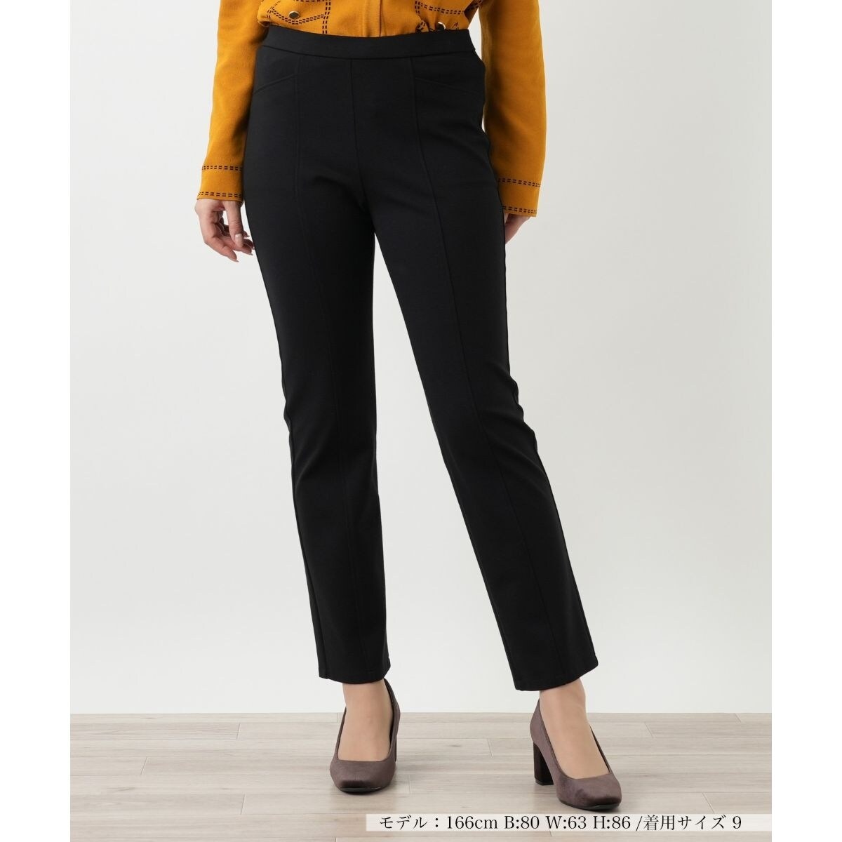 前のセンターに施された切り替えデザインが、すらりとした足長効果を演出するスリムパンツ。伸縮性に優れたポンチ素材を使用しているため、一日中快適な履き心地を保ちます。美しいシルエットと快適さを両立し、ON・OFF問わず活躍する細身パンツです。ご自宅で手洗い可能なウォッシャブル仕様で、お手入れも簡単。上品な装いを軽やかにサポートします。