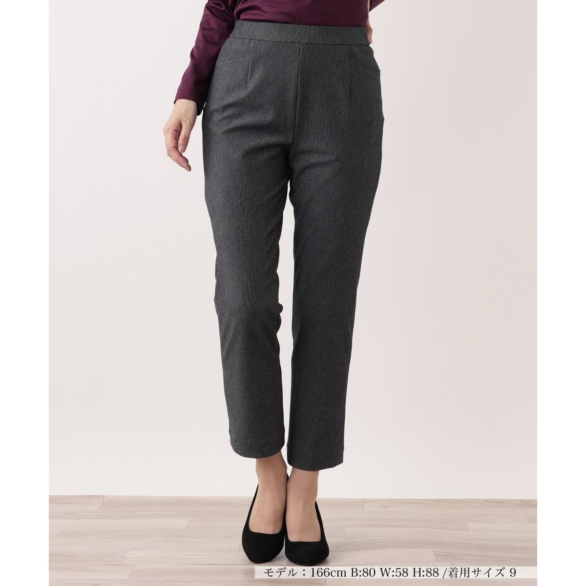 すっきりとしたレッグラインと、ノンストレスな穿き心地を両立したクロップドパンツ。細身のテーパードシルエットと足首が覗く軽快なクロップド丈が、スタイルアップ見せを叶えます。ウエストは総ゴム仕様で見た目はきちんとしながらも快適な着用感をキープ。ぐんと伸びるストレッチ素材で動きやすさも抜群です。オンオフ問わず活躍する、毎日のワードローブに欠かせない一本です。