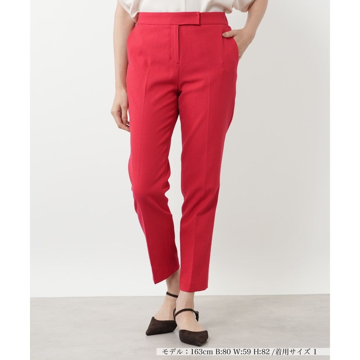 きちんと感と快適さを両立した美シルエットのパンツ。センタープレスが縦ラインを強調し、スタイルアップ見せ効果も期待できます。やや薄手の生地は伸縮性があり、動きやすさをサポート。ウエストは後ろのみゴム仕様で、すっきりとした見た目ながらフィット感も抜群です。お手持ちのアイテムとも合わせやすくオフィススタイルからお出かけまで、幅広く活躍するベーシックアイテムです。