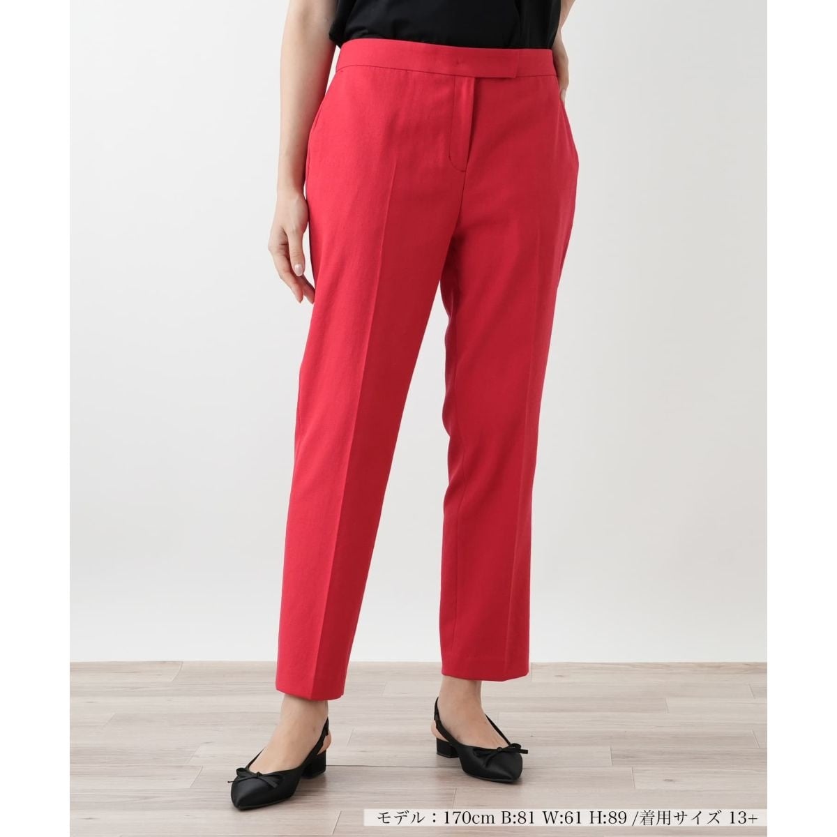 きちんと感と快適さを両立した美シルエットのパンツ。センタープレスが縦ラインを強調し、スタイルアップ見せ効果も期待できます。やや薄手の生地は伸縮性があり、動きやすさをサポート。ウエストは後ろのみゴム仕様で、すっきりとした見た目ながらフィット感も抜群です。お手持ちのアイテムとも合わせやすくオフィススタイルからお出かけまで、幅広く活躍するベーシックアイテムです。
