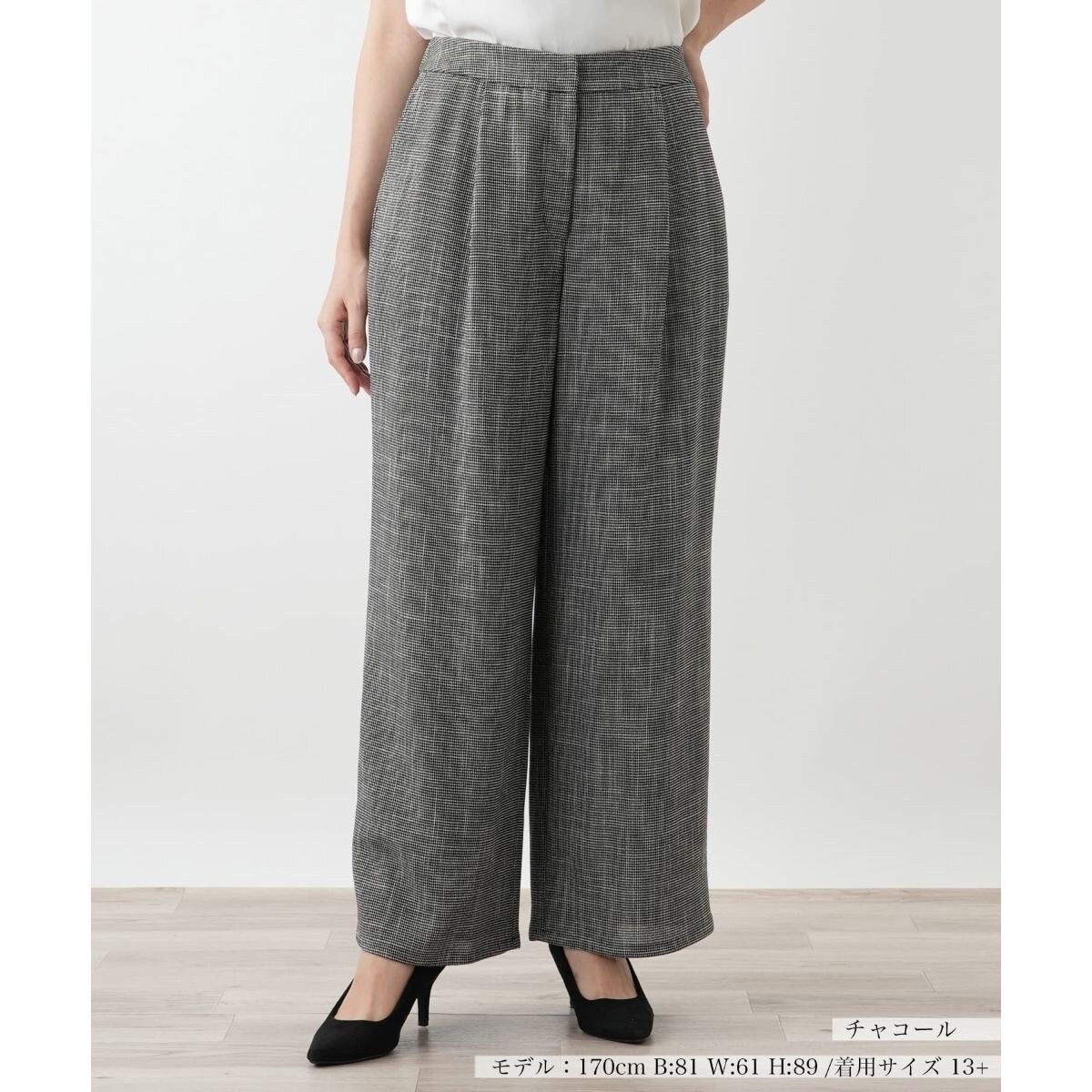 シーズンライクなざっくりとした生地感が特徴のワイドパンツ。上品でありながらも温かみのある印象を与え、秋のムードをいち早く取り入れられます。ゆったりとしたシルエットは、脚のラインを拾いすぎずに美しく見せ、体形カバーにもひと役かってくれそうです。後ろ部分のみゴムベルト仕様のため、フロントはすっきりと見せつつ、リラックス感のある穿き心地を実現。カジュアルなニットやブラウスに合わせてデイリーユースに、きれいめなシャツやジャケットと合わせれば、オフィスシーンやちょっとしたお出かけにも対応します。