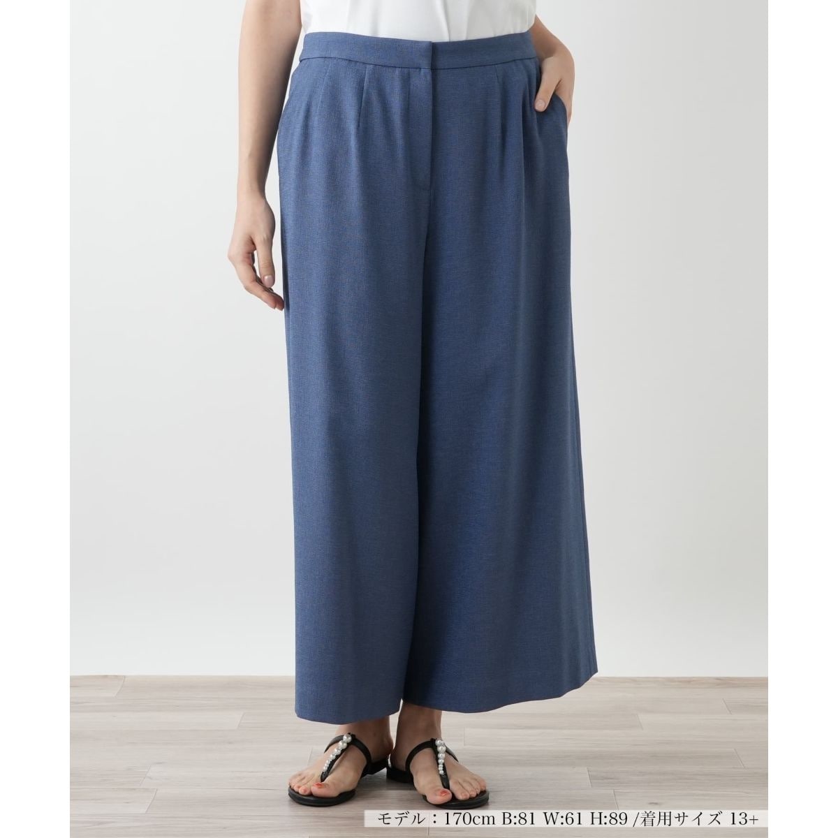 エレガントなシルエットが魅力のワイドパンツ。フロントはきちんと感のあるホック+ファスナー仕様で、トップスをタックインしてもすっきりと決まります。バックウエストはゴム仕様になっているので穿き心地もストレスフリー。シンプルなデザインでコーディネートしやすく、同素材のトップスでまとめるのはもちろん、単品でブラウスやニットと合わせても女性らしい雰囲気に仕上がります。