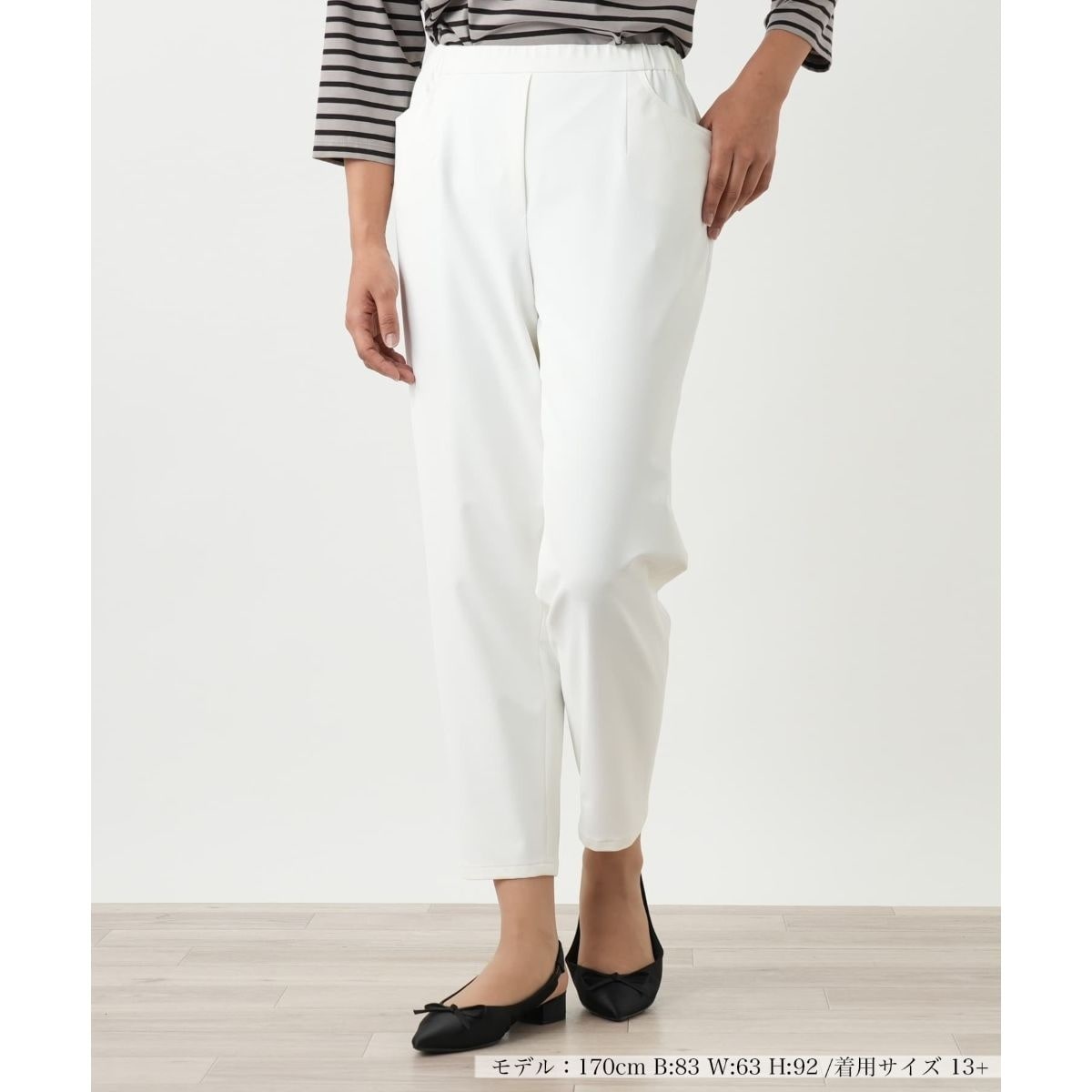 すっきりとしたシルエットが魅力のテーパードパンツ。ウエスト後ろ部分のみゴム仕様で、きちんと感を保ちながらも快適な着用感を叶えます。伸縮性のあるやや薄手の生地は、動きやすく長時間の着用にもストレスフリー。落ち着いたカラーが、秋の装いに落ち着きと上品さをプラスします。ヒップから裾にかけての緩やかなラインが脚を美しく見せ、オン・オフ問わず幅広いシーンに対応。シャツやブラウスを合わせてオフィスに、ニットやカジュアルトップスと合わせて休日コーデにも活躍する一本です。