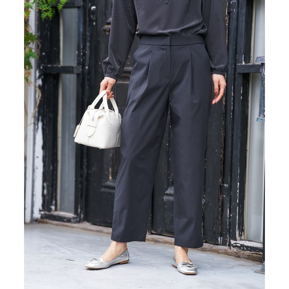 フロントタックが腰回りにゆとりを持たせつつ、美しい立体的なシルエットを生み出すパンツ。裾に向かって緩やかに細くなり、レッグラインをすっきりと見せます。ウエストは後ろゴム仕様で快適な穿き心地ときちんと見えを両立しました。伸縮性のある生地で動きやすいのもうれしいポイント。オンオフ問わずフレキシブルに活躍する、着回し力に優れた一本です。