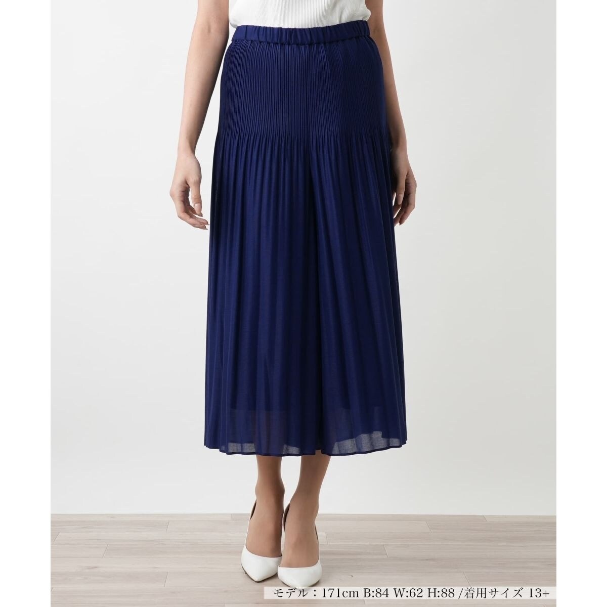繊細で美しいプリーツの表情が映える、軽やかな風合いのワイドパンツ。上部は細かなプリーツから始まり、裾に向かって緩やかに広がる幅広プリーツへと切り替え、奥行きのあるシルエットを演出。ウエストはゴム仕様でストレスのないはき心地も魅力です。スカート見えするエレガントな佇まいで、きれいめのスタイルからリラックスしたコーディネートまで自在に活躍するアイテムです。