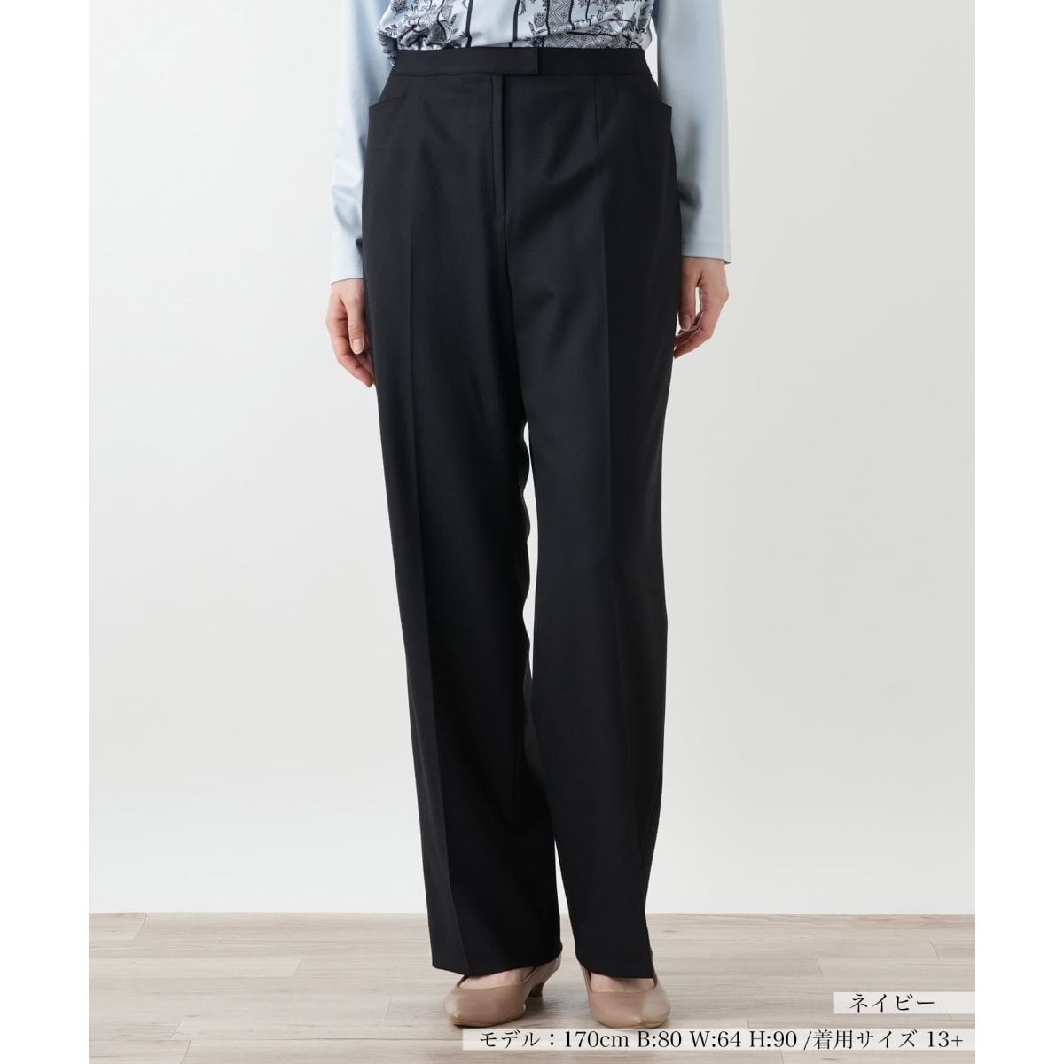 上品な広がりが特徴の、冬の装いに柔らかな印象をもたらすブーツカットパンツ。暖かみのある毛を主体とした素材にポリウレタンをブレンドし、快適なストレッチ性を実現しました。膝から裾にかけて緩やかに広がるフレアシルエットは、ブーツやヒールを合わせた際に脚長効果が期待でき、洗練されたスタイリングを叶えます。どんな色柄のトップスにも合わせやすい無地のデザインは、着回し力も抜群。フォーマルなシーンから、デイリーな装いまで、幅広いスタイリングでお楽しみいただけます。大人の女性の品格を大切にしながら、快適な着心地と美しいシルエットを追求した、冬のワードローブに欠かせない一本です。
