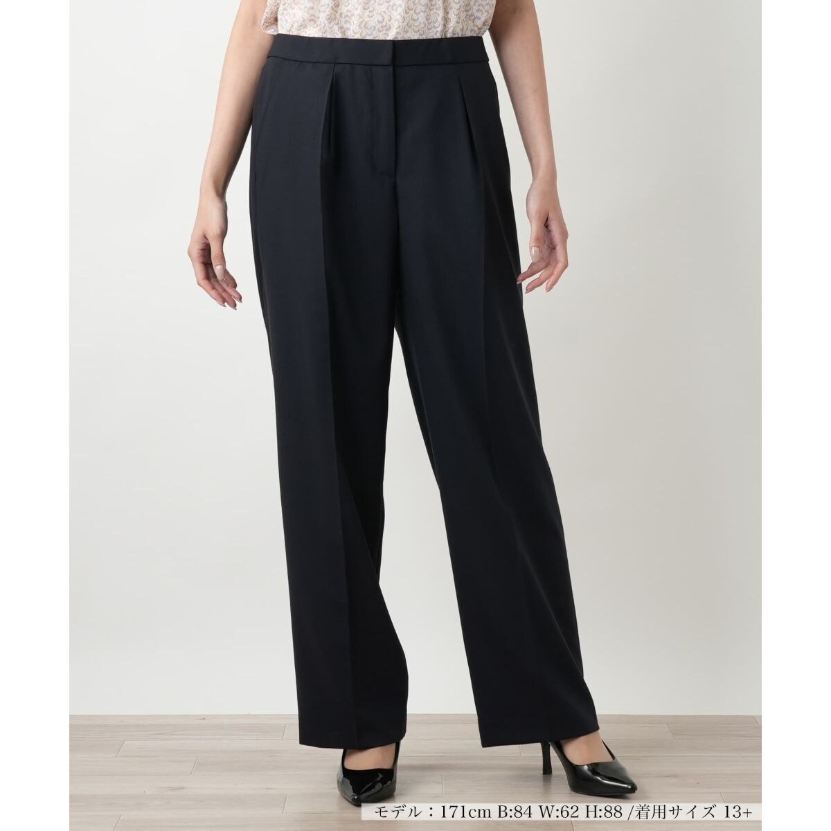 無駄を削ぎ落としたベーシックなデザインに、センタープレスがきちんと感を添えるパンツ。動きにフィットしながらも程よいハリのある素材がレッグラインを美しく整え、縦のラインを強調してスタイルアップを演出。程よいハリ感のある素材がシルエットを美しくキープ。同素材のジャケットやベストとセットアップで着用すれば、シーンを選ばず活躍する頼れる一本です。フロントはスナップボタンとホック、ファスナーで着脱が可能。