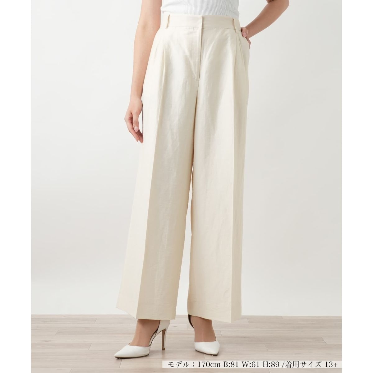 レーヨン、麻、ナイロンをブレンドした軽やかな生地で仕立てた、リラックス感漂うセンタープレスパンツ。端正なシルエットが、抜け感の中にもきちんとした印象を添えます。ウエストはスナップボタン+ホック+ファスナー開閉仕様で、スマートな着脱が叶う設計となっています。同素材のアイテムと合わせれば、セットアップスタイルも楽しめます。デイリーからオフィス、週末のお出かけまで、オンにもオフにも品よく寄り添う一本です。