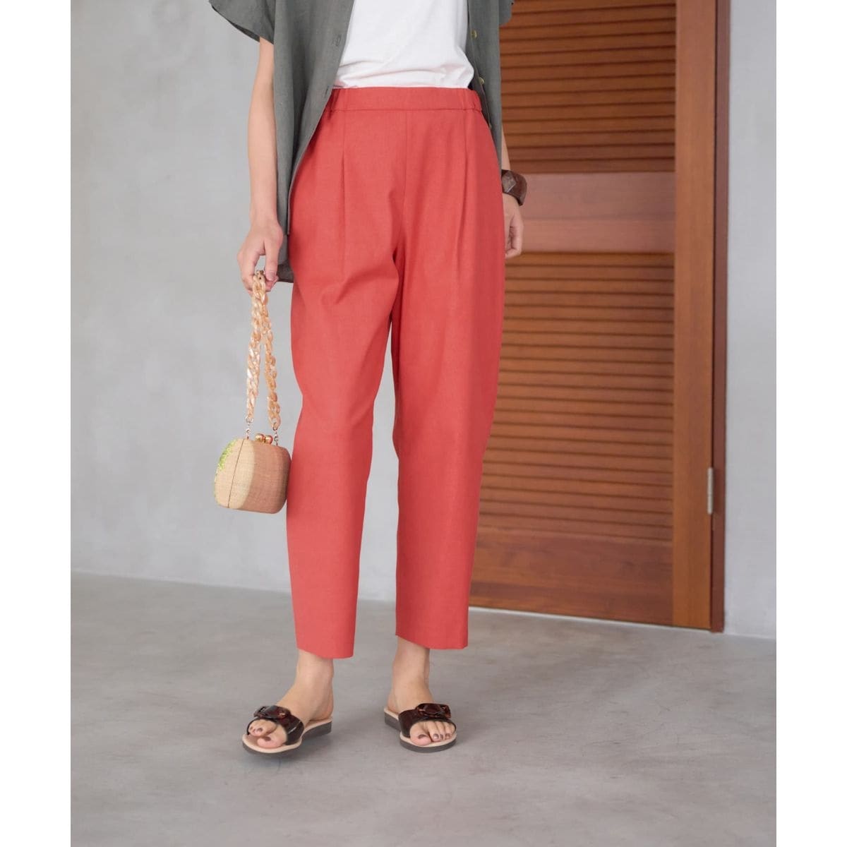 これからの季節にぴったりのナチュラルな風合いで、毎日の着こなしに心地よく寄り添うイージータックパンツ。ポリエステルにコットン、麻をブレンドし、さらっとした肌ざわりと軽やかな着用感が魅力。リラックス感のあるストレートシルエットに、さりげないタックを効かせて、すっきりとした印象に仕上げました。ウエストはゴム仕様で動きやすさも抜群です。きちんと見えと快適さを両立した、大人のカジュアルパンツです。