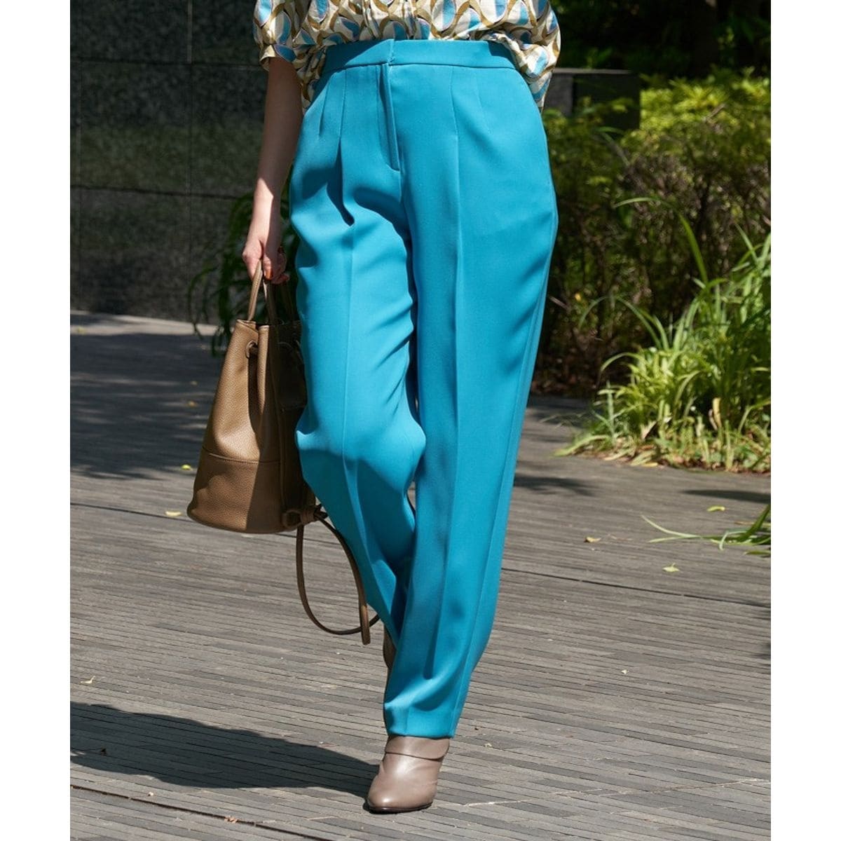 バランスよく施したタックがきちんと感を演出してくれるから、オフィスや改まった場面でのスタイリングにもぴったりです。
