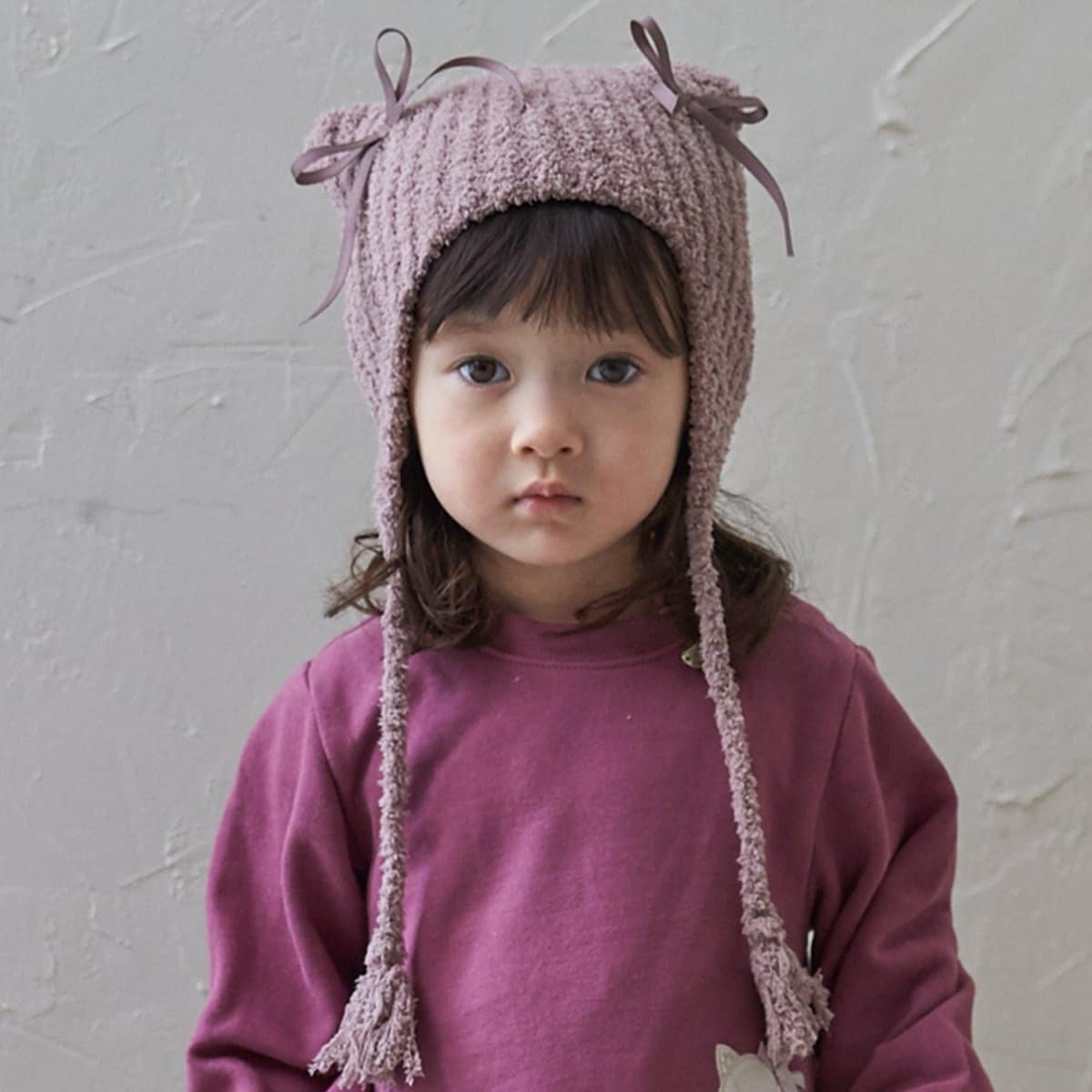 ふわふわもこもこ*ベビーギフト*ネコ耳ニット帽(リブ付き)