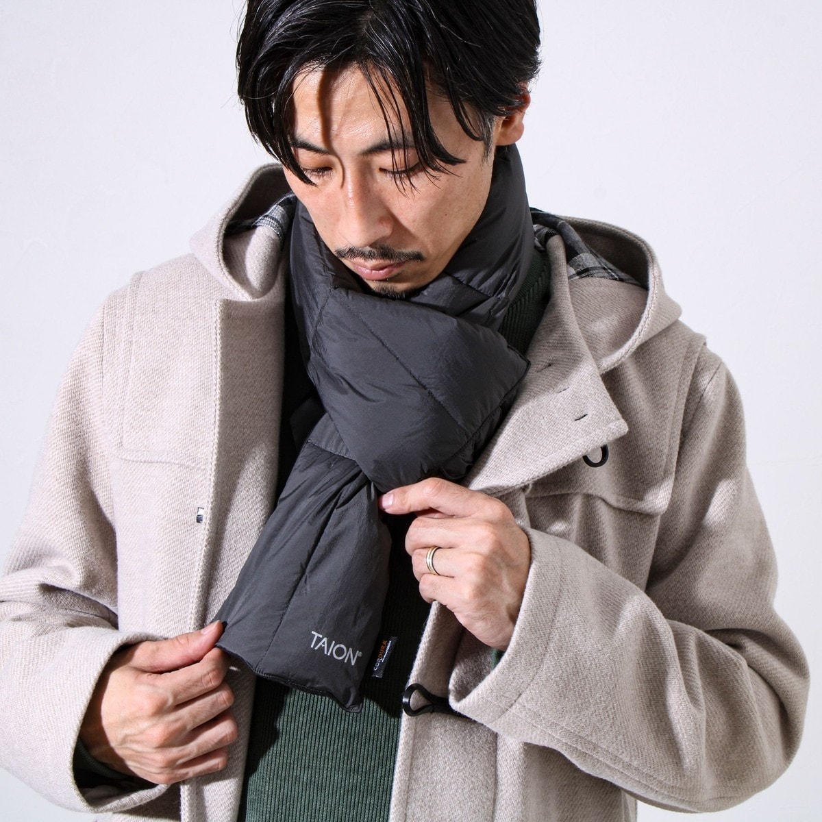 ”CORDURA(R)×800FPダウン。実用性を兼ね備えたダウンマフラー”