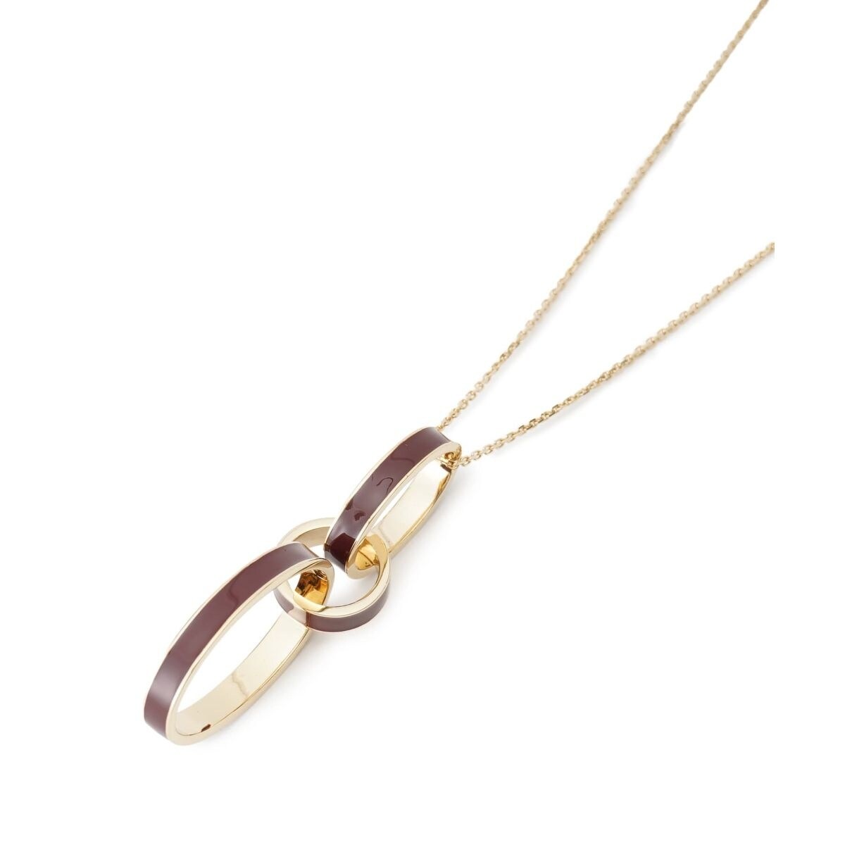 チェーンの通し方を変えることで、2通りの表情を楽しめるロングネックレス。大きさの異なる3つのリングを組み合わせたモチーフが、胸元でひと味違った上品な存在感を放ちます。装着すればすっきりとした縦長のシルエットになり、シンプルなブラウスやニットを洗練された印象に見せてくれます。その日の気分に合わせてアレンジが可能となり、着こなしの幅を広げてくれるアイテムです。