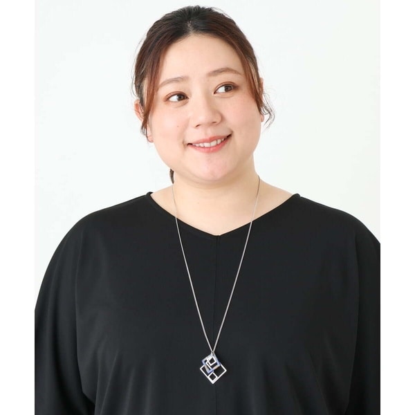 胸元で揺れるニュアンスがスタイリングにアクセントを加えるデザインネックレス。大小のメタルスクエアにストーン調のアクリルパーツを合わせ、立体感のあるトップに仕立てました。華奢なロングチェーンで縦ラインを強調し、スタイルアップも後押し。大人かっこいいコーディネートにも最適な汎用性の高いアイテムです。
