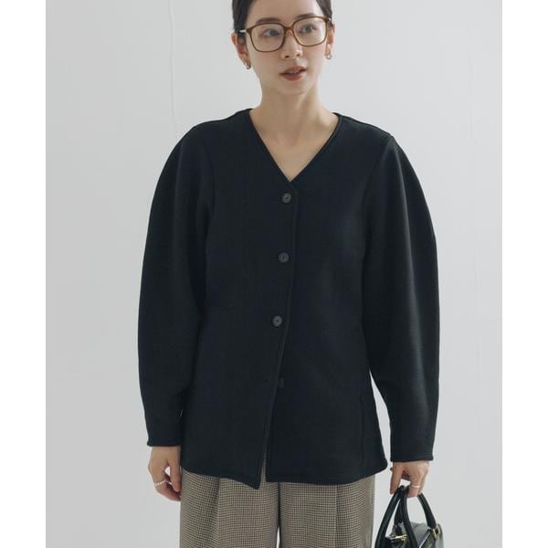 Vネックデザインが首元をすっきりと見せてくれます。たっぷりとボリュームを持たせた袖と、ウエストを絞ったメリハリのあるシルエットなので着ぶくれせず、 ボタンを留めてトップスとして着ても映えるデザインです。