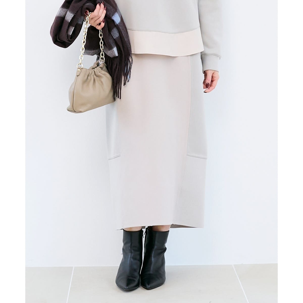 杢調の合繊素材と大胆に切り替えることにより鮮度ある表情に仕上げました。