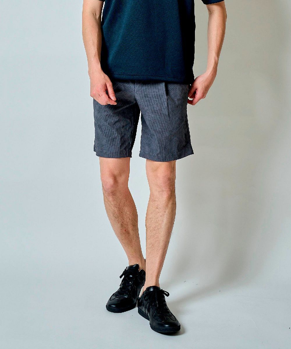 タックの入ったスラックスライクなテーパードショートパンツ