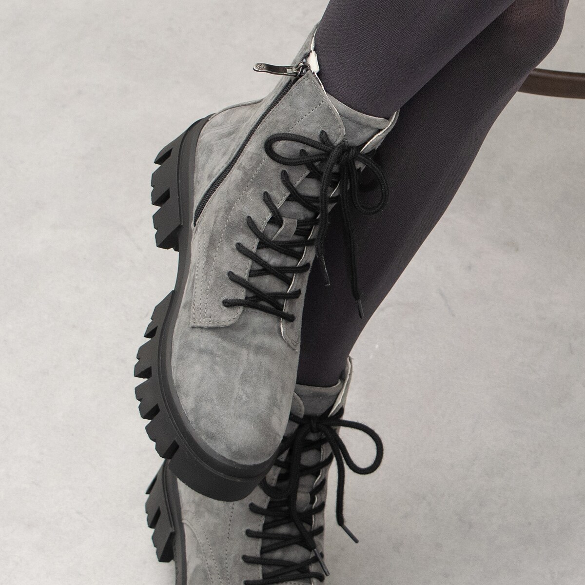 厚底でスタイルアップ効果が期待出来そうな撥水加工のレースアップレザーショートブーツ。