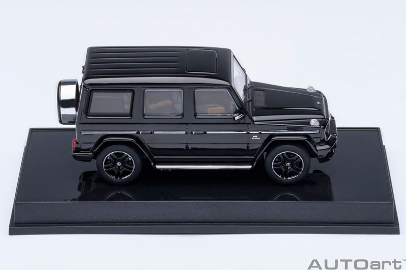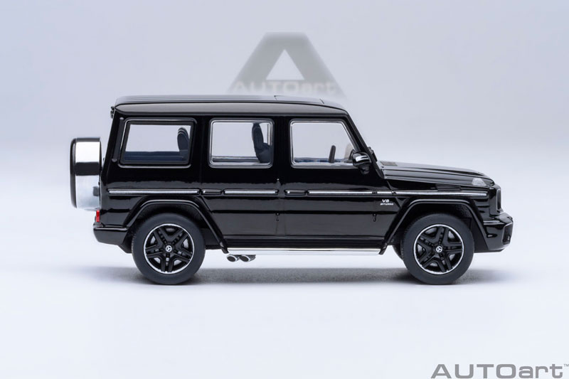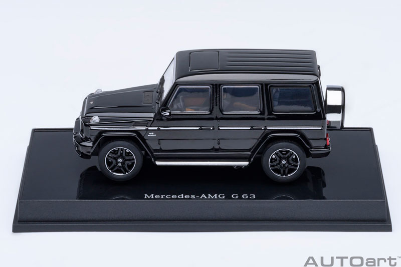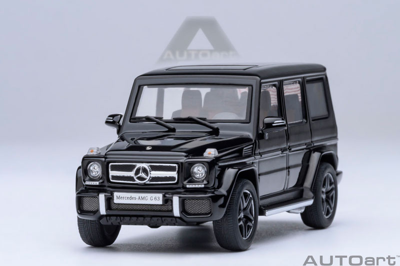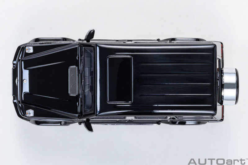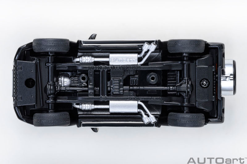 基本的なスタイリングや堅牢なボディはそのままに、デビュー以来30年以上にわたって進化を続けてきた「メルセデス・ベンツ Gクラス」。そこに最高出力571psを発生する5.5リッターV8ツインターボエンジンを搭載したのが、先代最終モデルのハイパフォーマンス仕様となる『メルセデス・AMG G 63 2017』です。オートアートでは、1/64の小スケールながら、コンポジットダイキャストモデルの強みを活かしたシャープな造形と剛性感、重量感を実現。5スポークの20インチホイールや、シャーシ裏のラダーフレーム、ボディサイドに伸びる左右4本出しマフラーなど、可能な限り細部までリアルにモデル化しました。