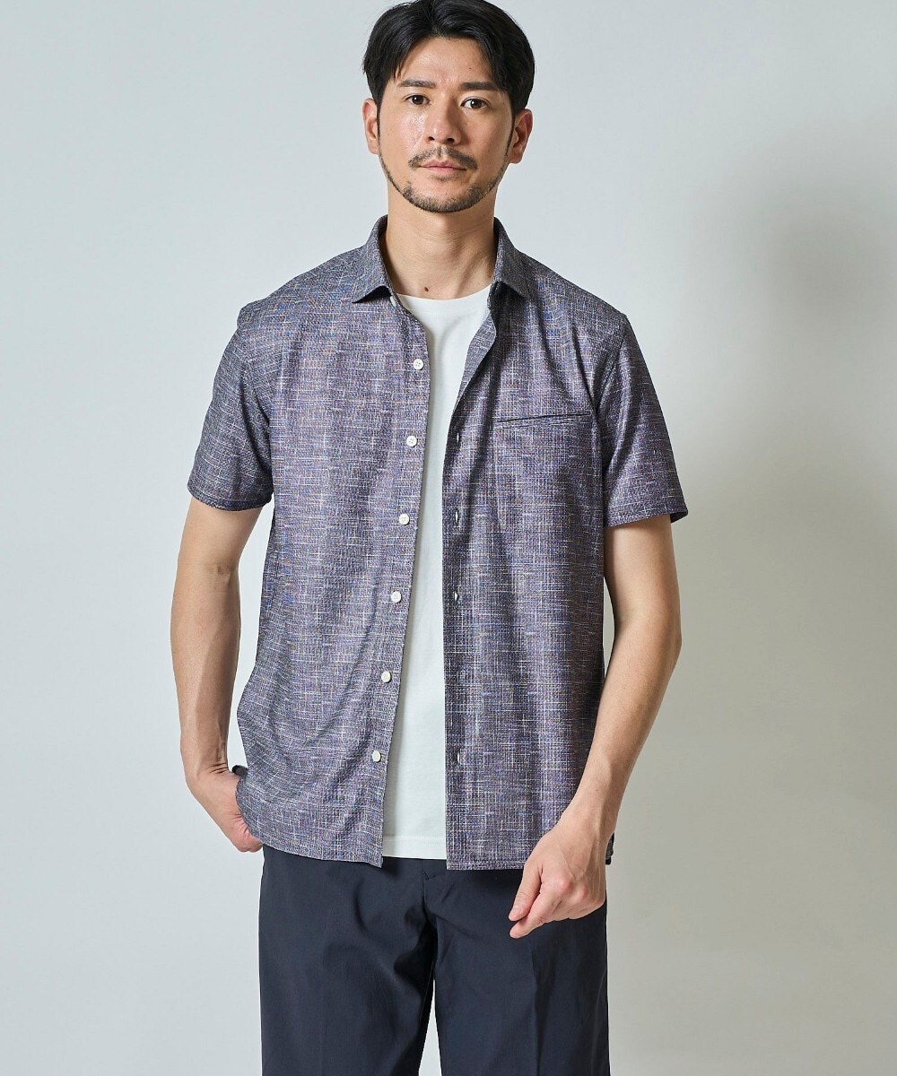サラッとした肌触りのかすれメッシュ柄半袖ドライシャツ