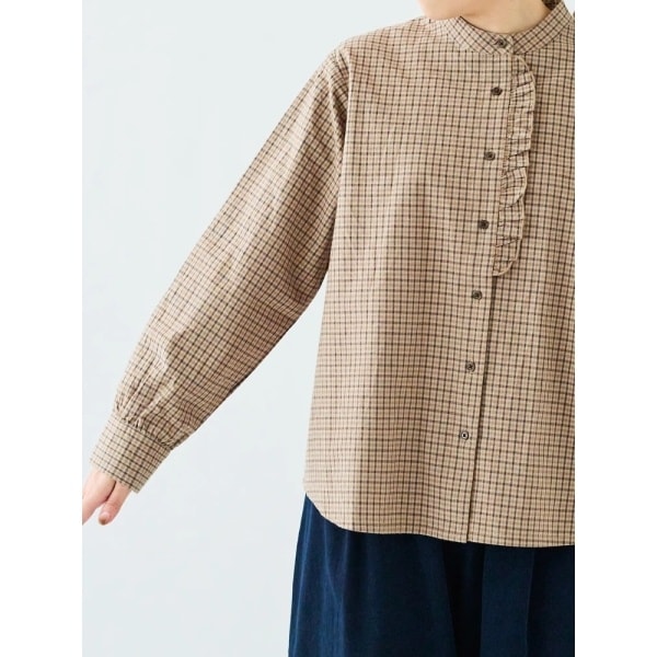DOUX archives スタンドブラウス レディースブラウス 柄ブラウス F キャメル