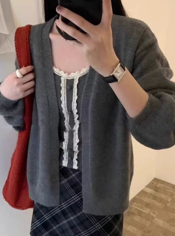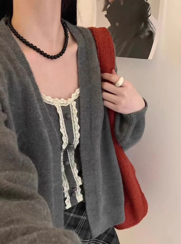 ☆素材は【(カーディガン)本体:アクリル45% ポリエステル29% ナイロン26% (キャミ)レース:コットン100%】