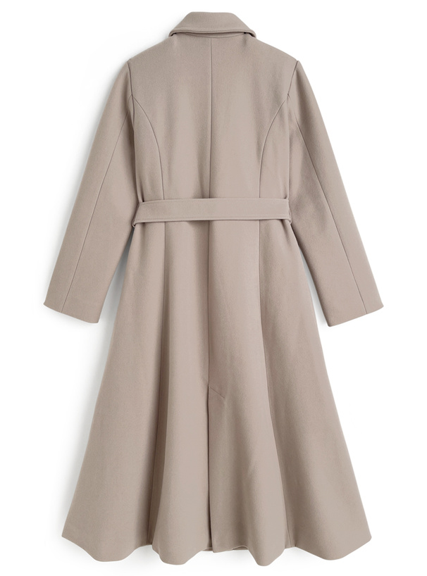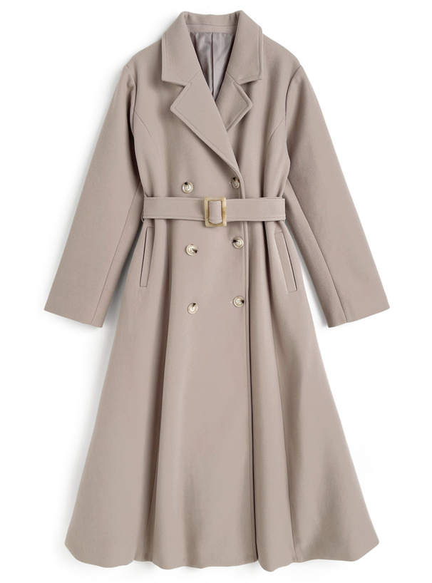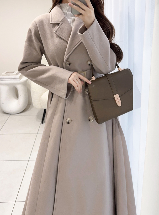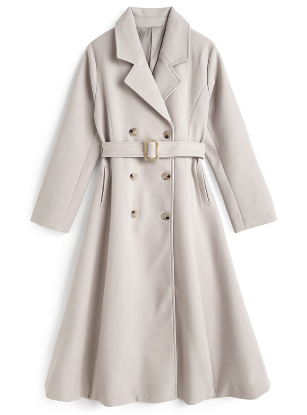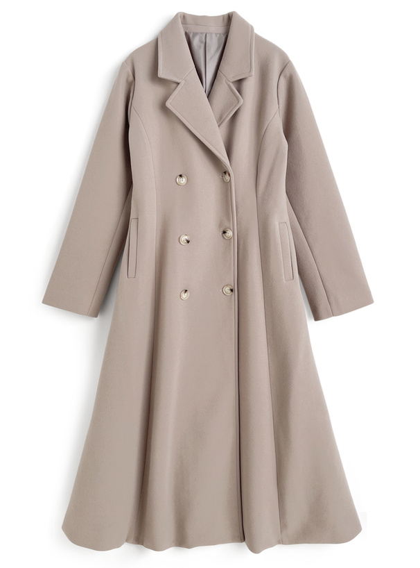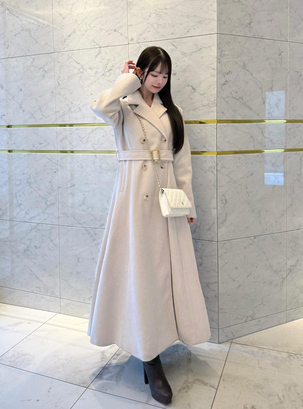 しっかりとした程よい厚みのフェイクウール素材で仕立てた上品なロングコート。
