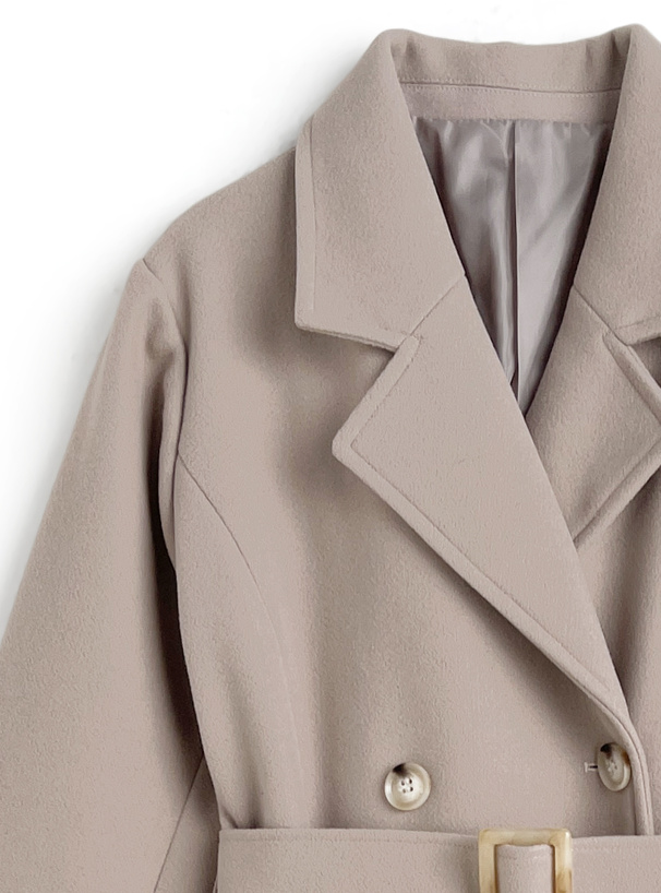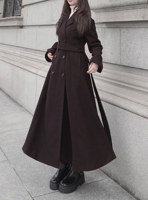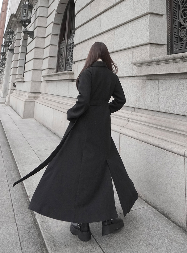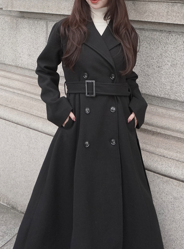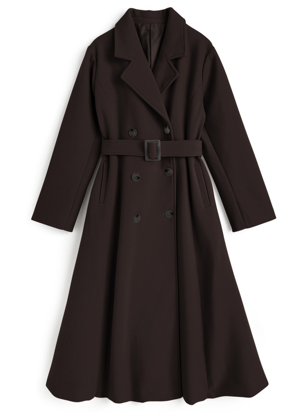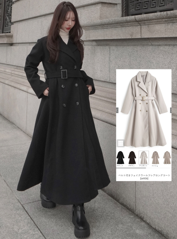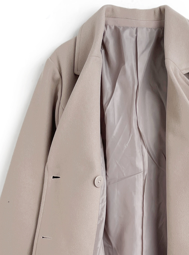 しっかりとした程よい厚みのフェイクウール素材で仕立てた上品なロングコート。