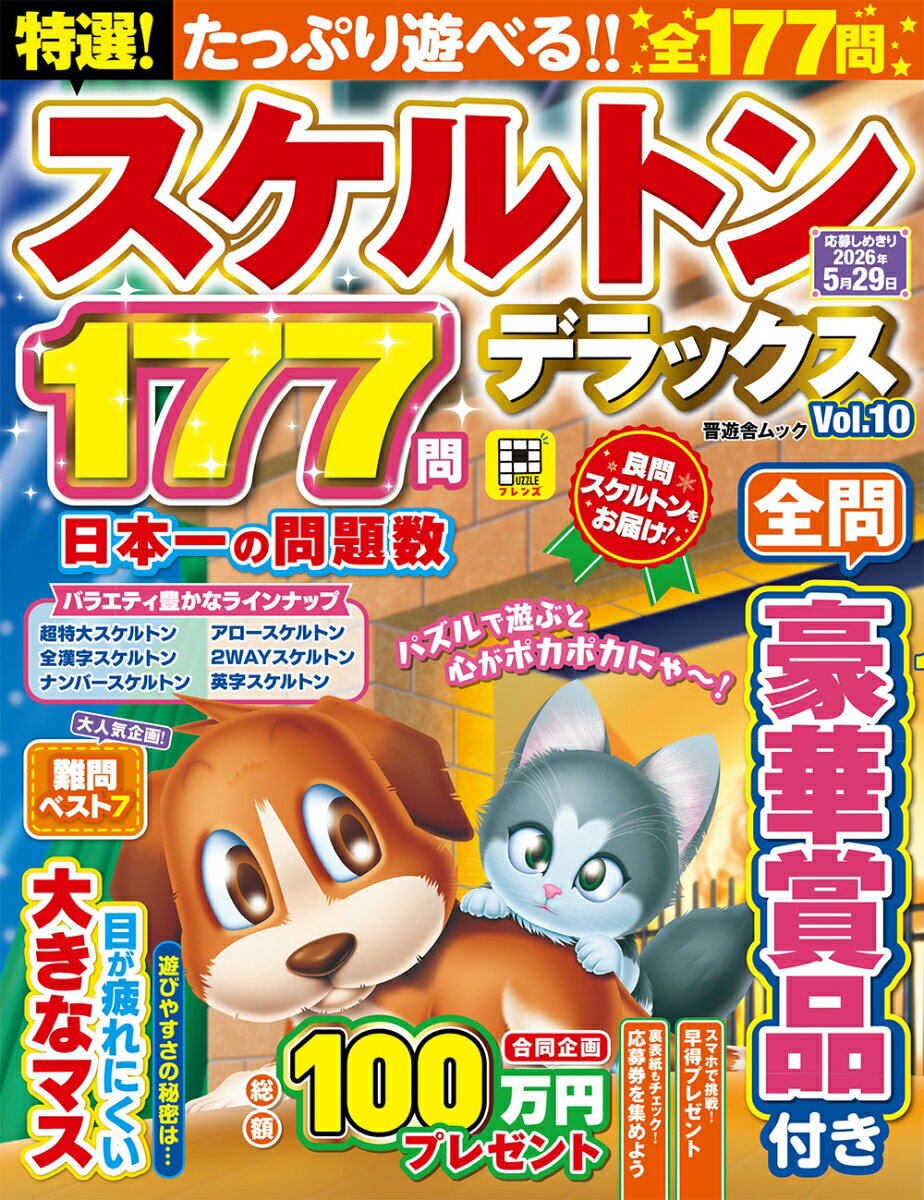 ◆全177問収録! 日本一の問題数!◆選び抜かれた傑作選! 楽しさ満点の「特選ベスト27」◆大きな問題に挑戦! 超特大スケルトン◆マス&文字が大きくて目が疲れにくい誌面です! ヒントを元にキーワードを埋めていく論理パズルです!「スケルトンパズル」は、クロスワードパズルと同じく、マスの中にキーワードを当てはめていくパズルですが、マスが「骨組み(スケルトン)」のように組まれているのが特徴です。どのマスにどのキーワードが入るかを、文字数や交差部分に共通する文字などの、限られたヒントから推理して解いていきます。スケルトンにアロークロスが合体した「アロースケルトン」や、キーワードの一部がイラストになっている「イラストスケルトン」など、問題のバリエーションも豊富です。