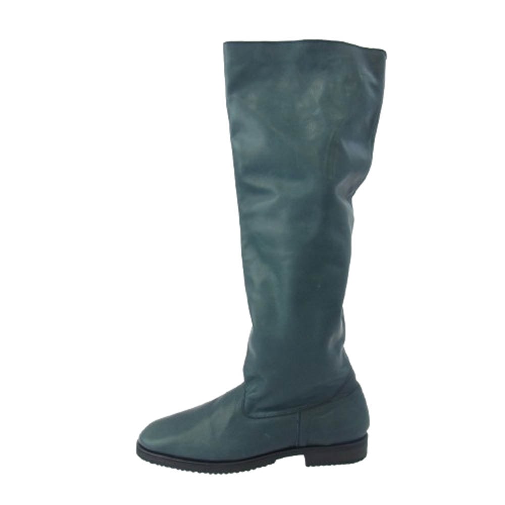 Yohji Yamamoto POUR HOMME ヨウジヤマモトプールオム ブーツ 23AW LOOK24着用モデル インディゴレザー ロング ペコスブーツ モスグリーン系 4【中古】
