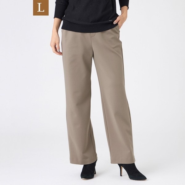 【L】【マシンウォッシャブル】バックスエードダンボールニットストレートパンツ