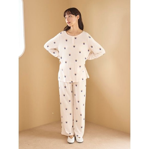 <b>【可愛いおやつをプリントしたワッフルロングパンツ】</b>