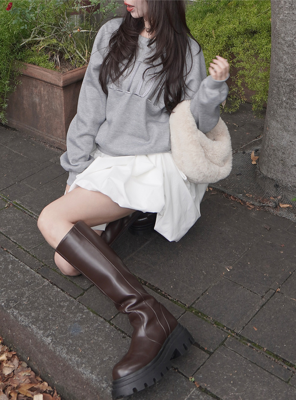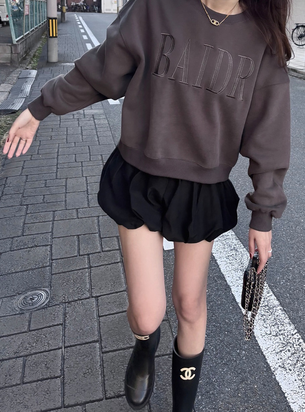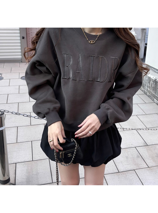 ヘビーウェイトの裏起毛スウェット生地が心地良い肌触りのトップス。