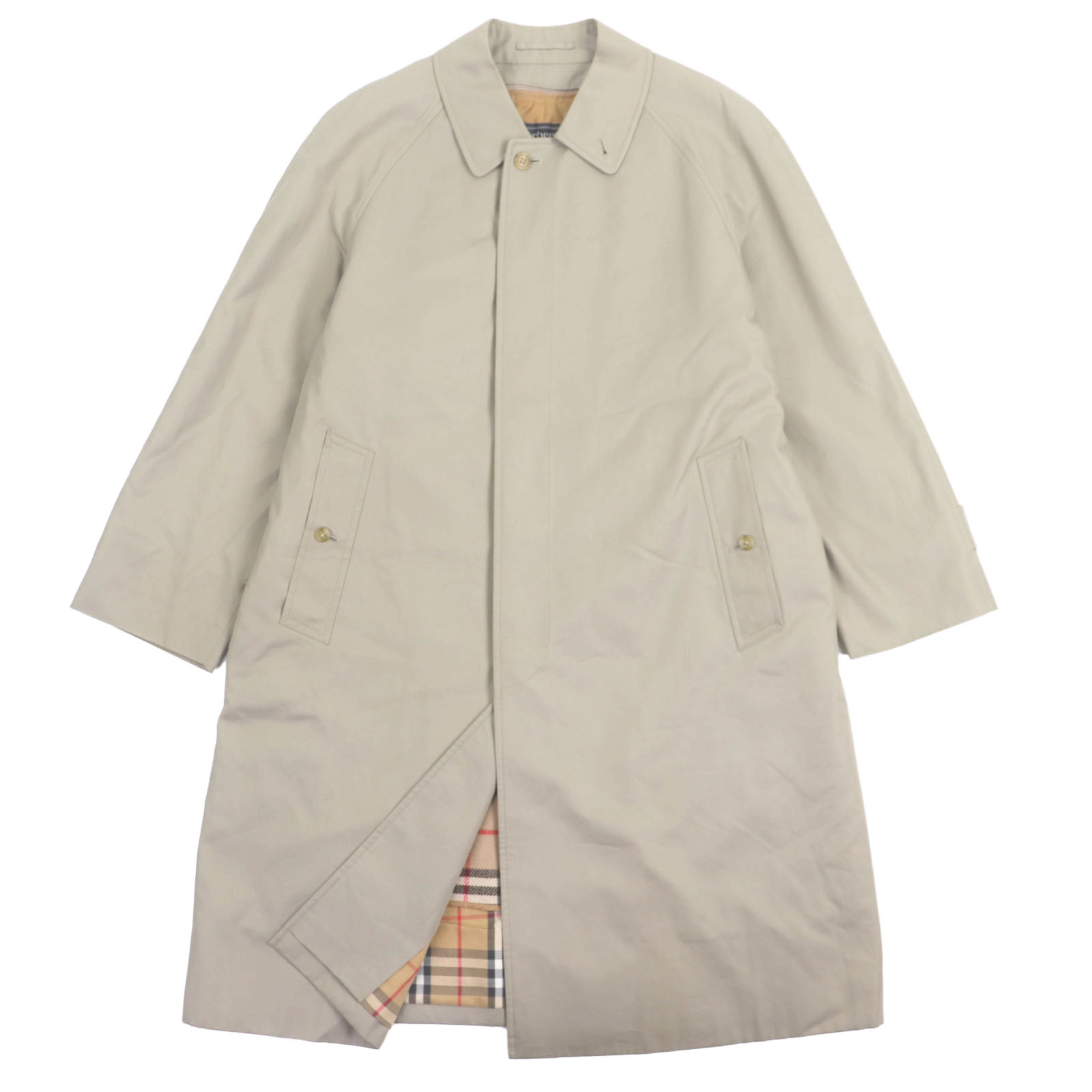 良品▼Burberrys バーバリー ヴィンテージ 裏ノバチェック柄 ライナー付き 比翼仕立て ステンカラーコート カーキ L イングランド製 メンズ【中古】