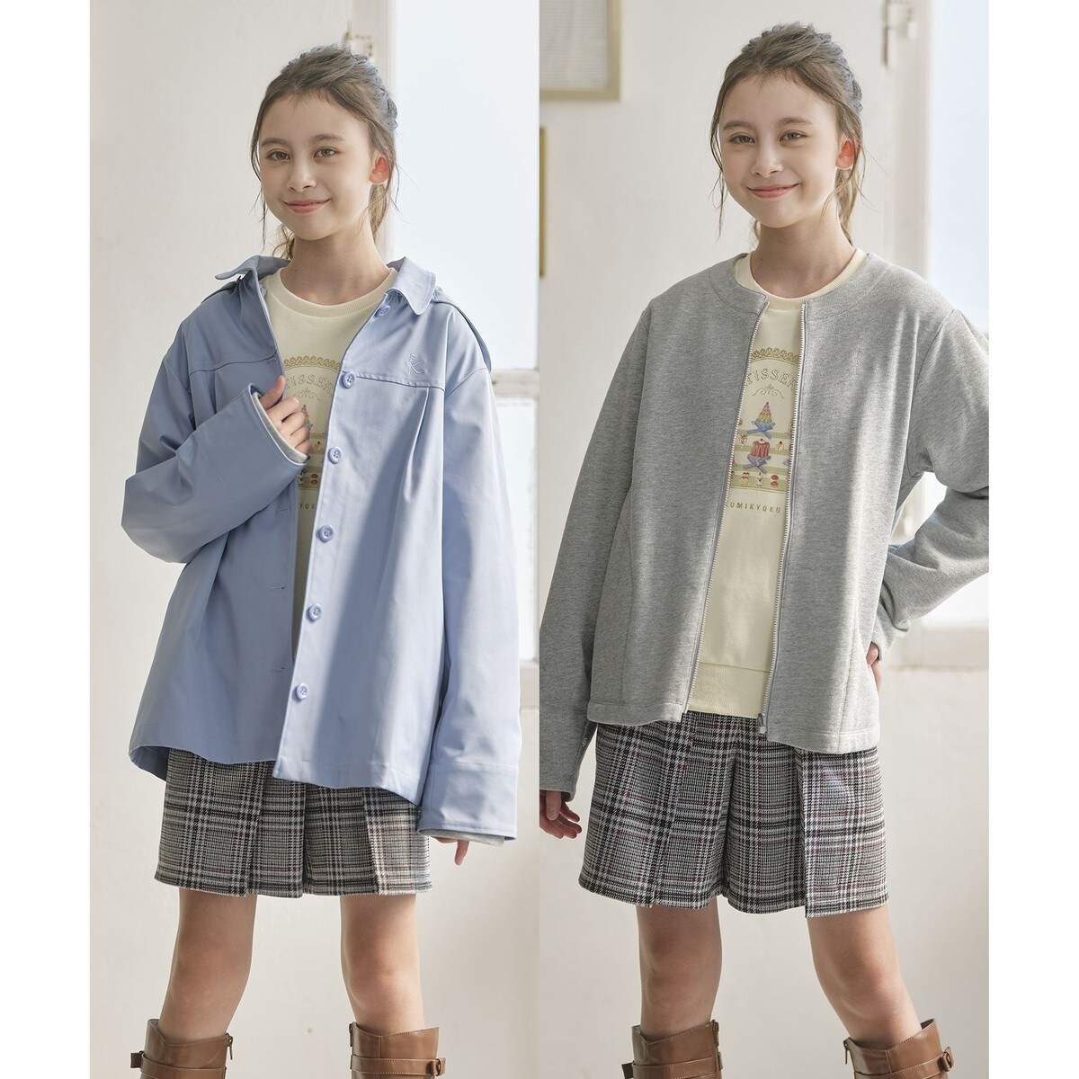 程よい肉感の柔らかな裏毛素材を使用しております。カジュアルに気軽に羽織れるので、単体でも春から初夏にかけての肌寒い時期の通学や普段使いにぴったりです。