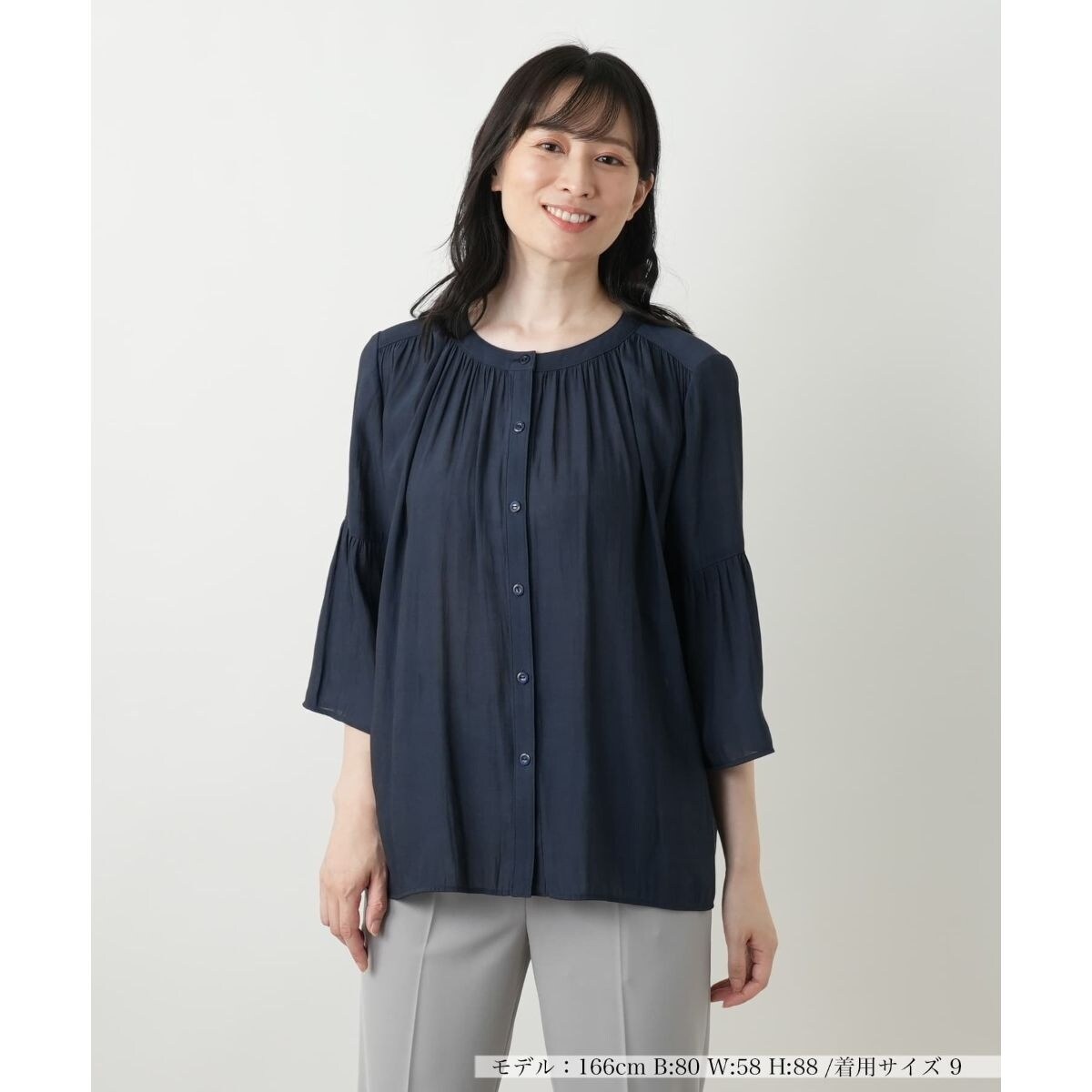 巧妙に施されたギャザーが描き出す繊細なドレープが、女性らしさをそっと引き立てるフレアブラウス。袖先にかけて広がるスリーブが動くたびに揺れて、着こなしに軽やかなリズムを奏でます。ゆったりとしたシルエットでナチュラルにスタイルカバーも叶えてくれる一枚です。これからのシーズンの日常のスタイルに気負わずフェミニンを添えるなら、こんなブラウスをセレクトしてみてはいかがでしょうか。