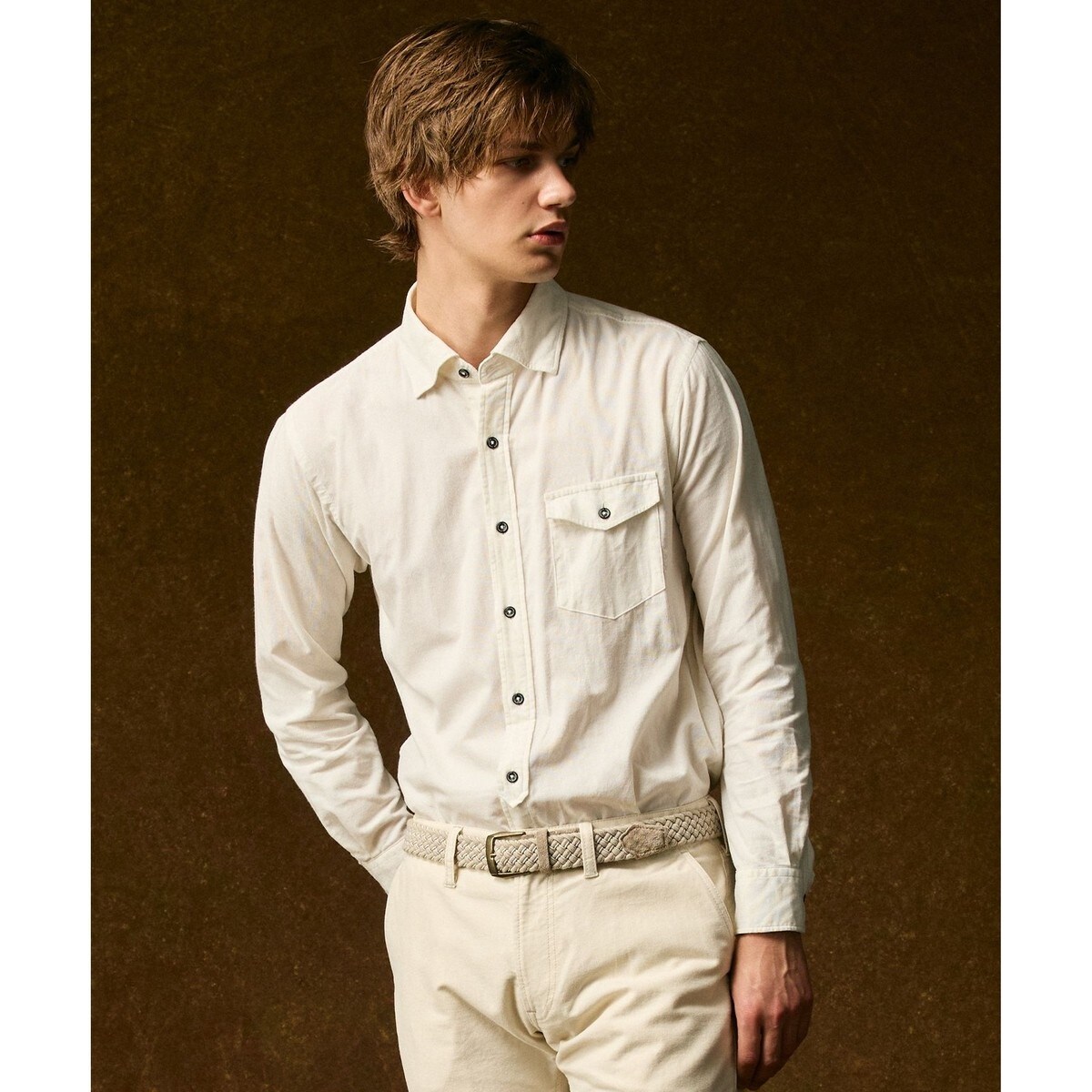 衿元には「フライポイントカラー」を採用しており、顔まわりをすっきりと見せながら、さりげない個性を演出します。 胸ポケットや袖口など、細部にわたってワークテイストのディテールが落とし込まれていますが、全体のバランスが良く、カジュアルながらも品良く着こなせるデザインです。 一枚で主役として着用するのはもちろん、ジャケットやニットのインナーとしても活躍し、秋冬のコーディネートに奥行きと深みを加えてくれる一枚です。