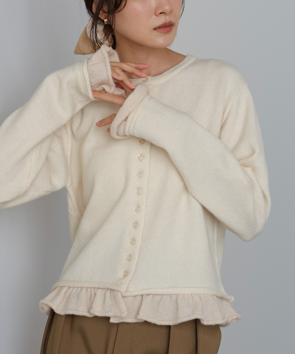 配色フリルニットカーディガン