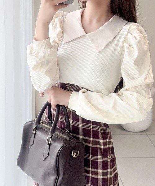 25AW新作【mily bilet】配色ラインがポイント♪上品なポロ襟リブニット