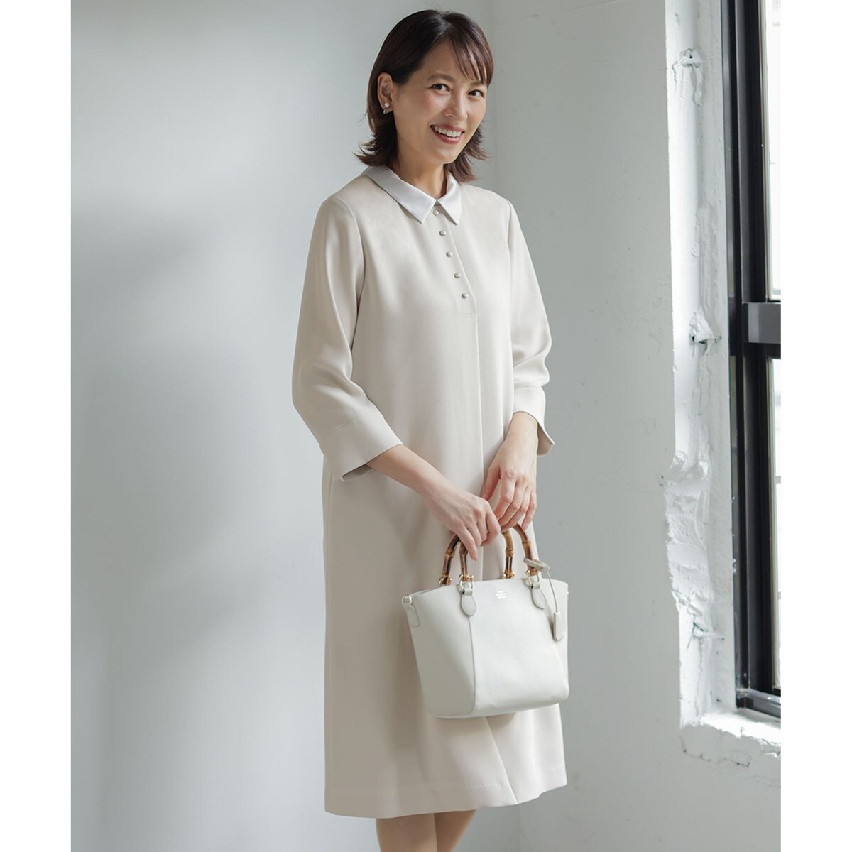 取り外し可能な襟付き!1枚でハレの日のスタイリングがきまるワンピース