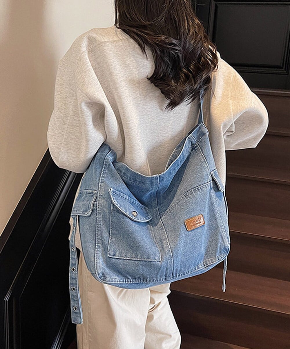 カジュアルコーデの定番デニム生地を使用した、おしゃれなショルダーバッグ。